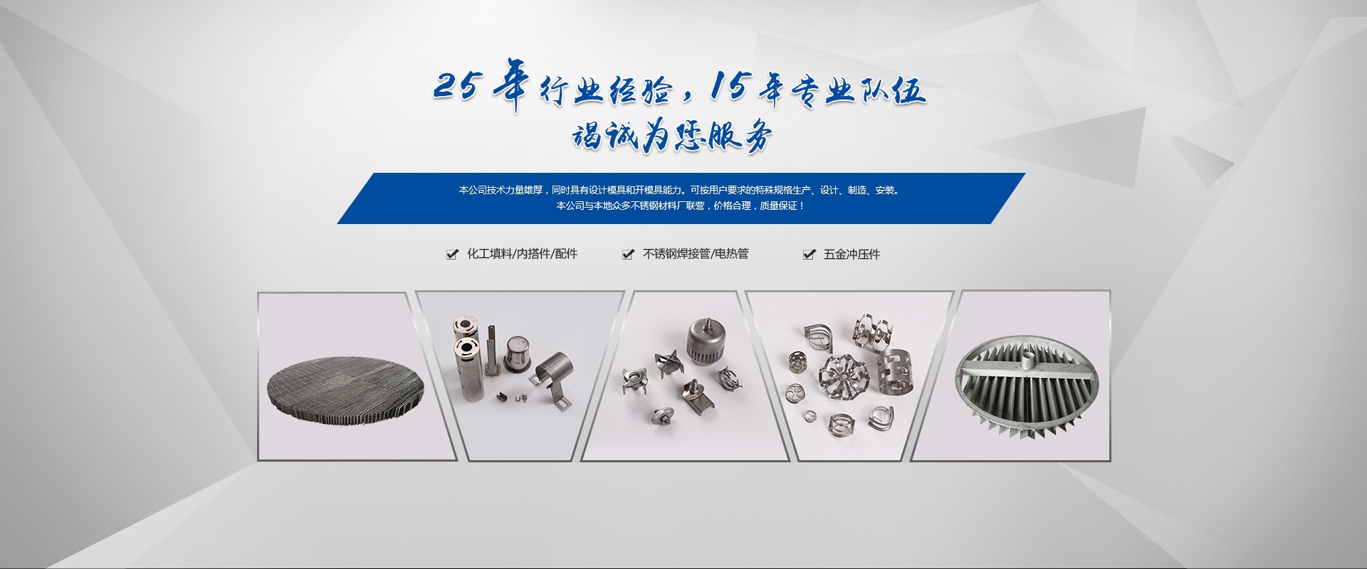 嘉興市久達不銹鋼有限公司原海鹽中晟不銹鋼有限公司,本公司是全國化工行業和中國石化總公司推薦新型填料、塔內件及配件產品的專業生產廠。2009年建成標準化廠房,生產能力得到進一步的提升,效率也更加高效。散堆填料采用高速沖床一次成型技術生產。